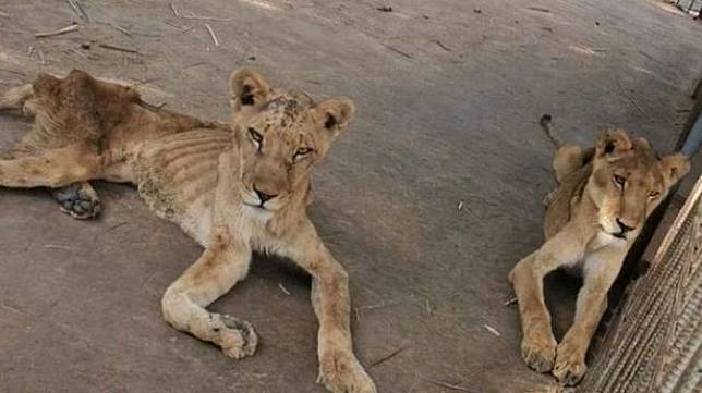 Kondisi parah singa-singa yang berada di kandang di Taman Al-Qureshi, satu daerah elit di ibu kota Khartoum, menyebabkan banyak pihak terkejut dan marah.